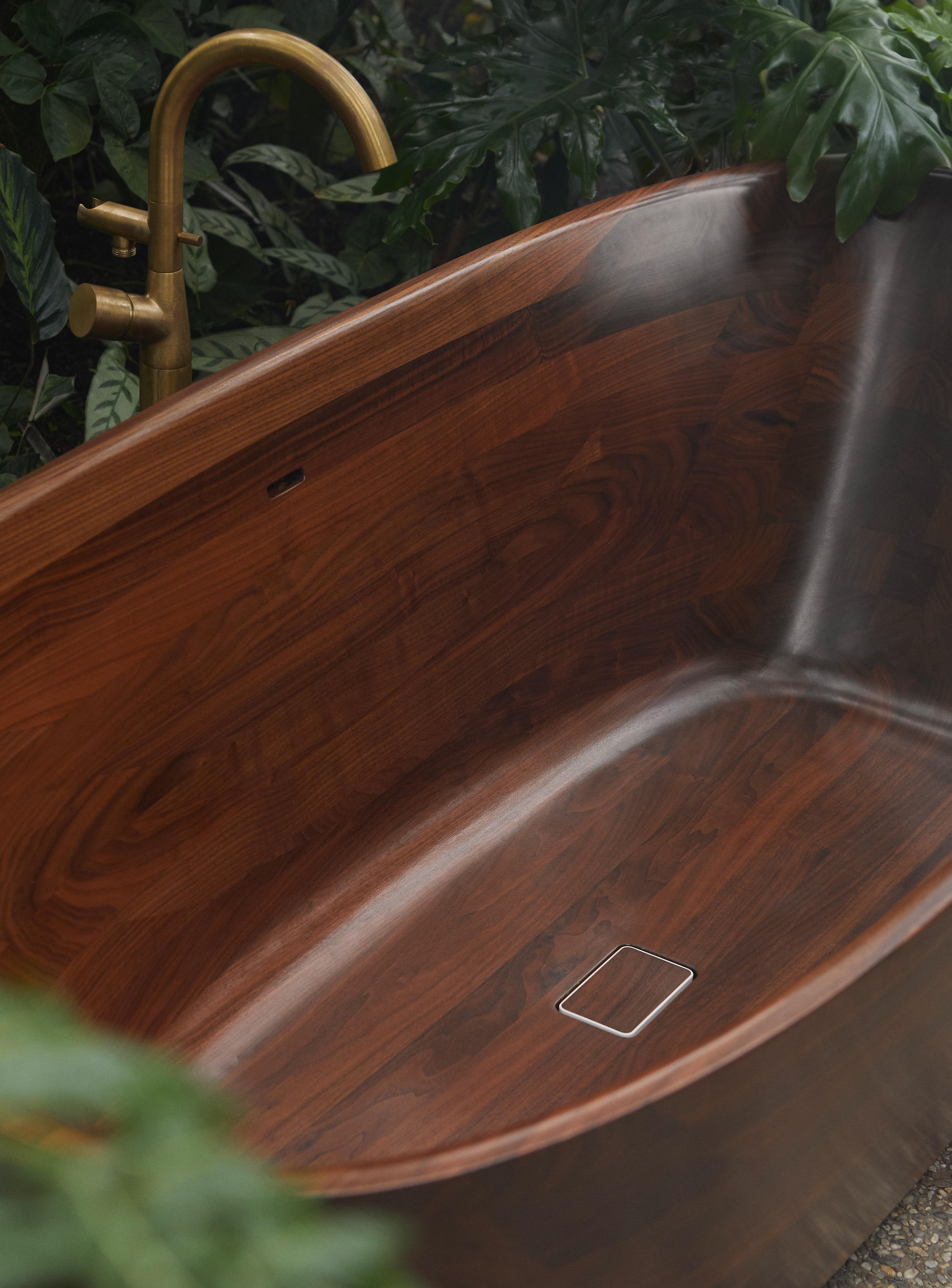 (c) intheheadroom (Holzbadewanne Shell) bzw. Classicon (Spiegel Cypris)