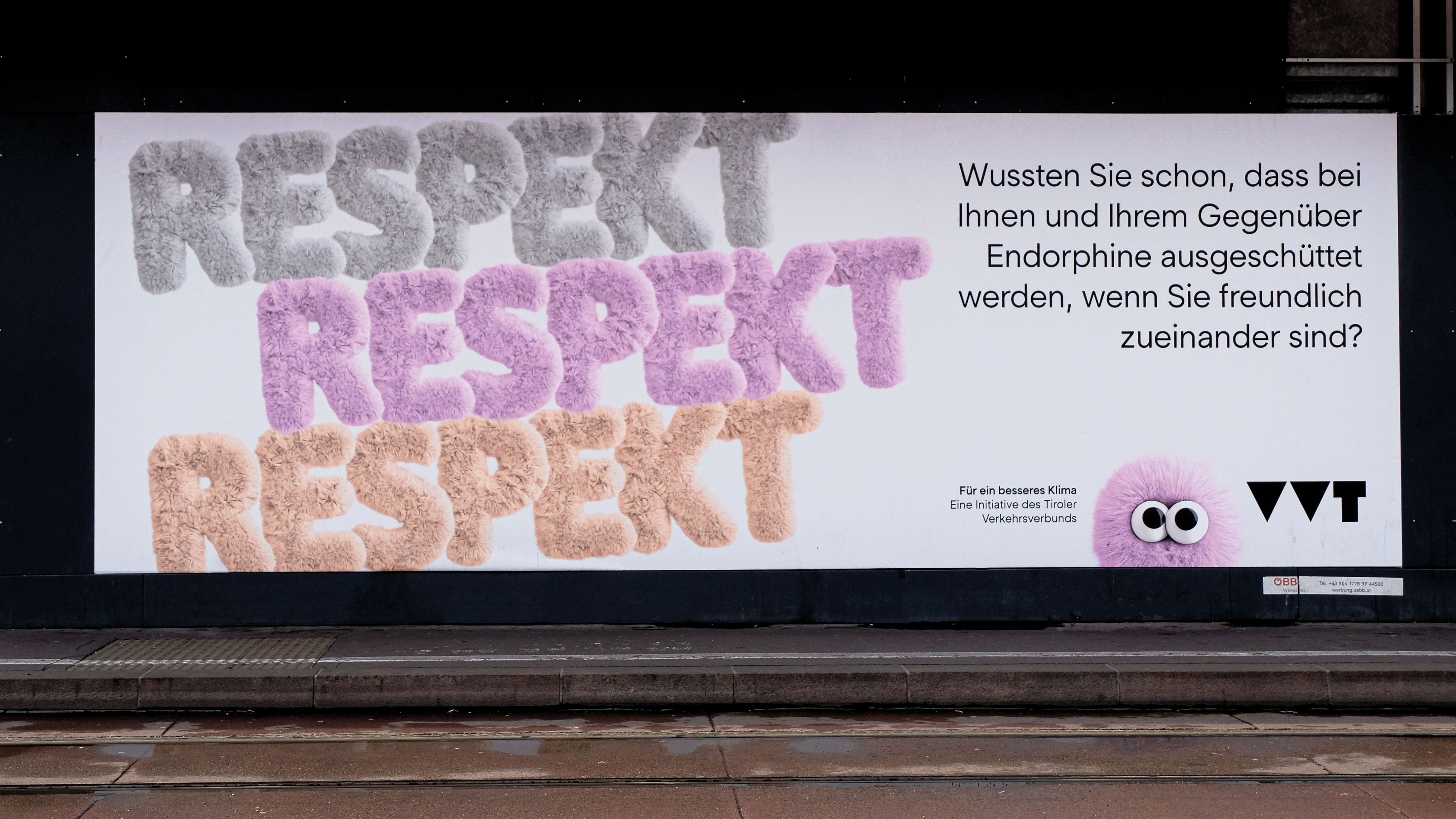Angi Reisinger gibt Einblick in die Entstehung der preisgekrönten Kampagne „Rücksicht“, welche sie Ende 2024 für den Verkehrsverbund Tirol (VVT) umsetzen konnte. Respekt, Geduld und Rücksicht sind für ein gutes Miteinander im öffentlichen Verkehr unerlässlich. Die Kampagne „Rücksicht“ macht diese Werte sichtbar: Flauschige Buchstaben, die vertrauten Farben der Fahrzeugflotte und charmante Helfer mit großen Kulleraugen setzen ein liebevolles Zeichen für mehr Miteinander und Wertschätzung im Öffi-Alltag – und für ein besseres Klima.