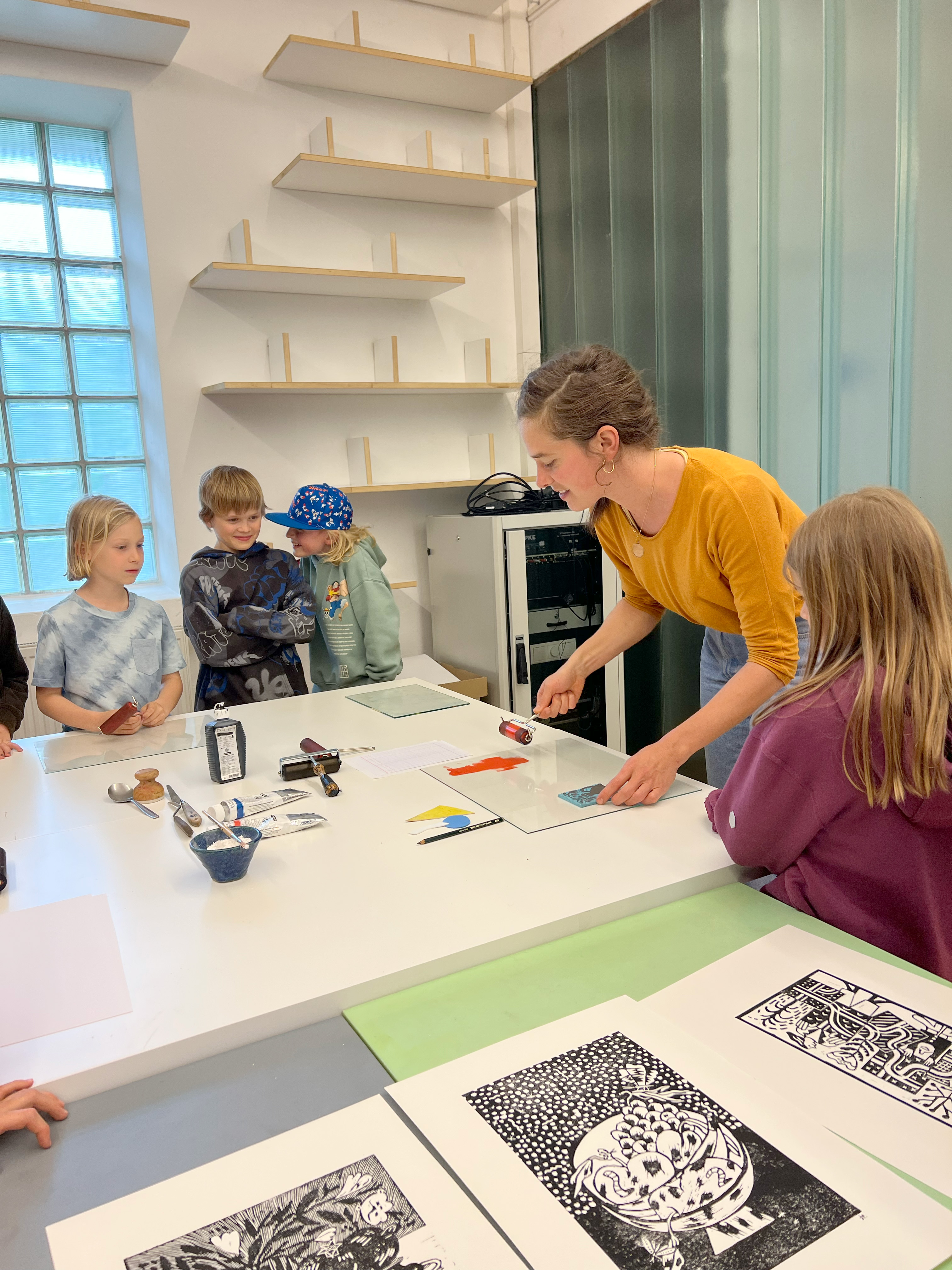 Drucken mit Linolschnitt, GrafiKids Workshop mit Isabel Peterhans, 10.05.23
